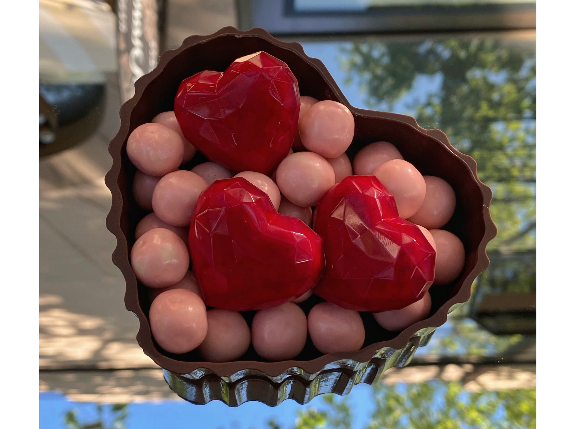 Bombonera corazón Con grageas y bombones rellenos Tamaño 10*10*2 cm